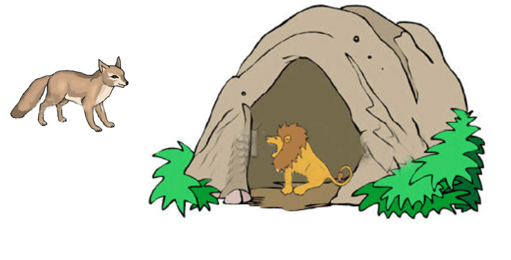 ஒரு சிங்கம் காட்டில் உணவைத் தேடி அலைந்தது. ஒன்றும் அகப்படவில்லை. நீண்ட நேரம் கழித்து அது ஒரு குகையைக் கண்டது. "இந்தக் குகையில் தங்கும் விலங்கு நிச்சயமாக வரும். அப்போது அதைப் பிடித்துத் தின்னலாம். அதுவரை உள்ளே காத்திருப்போம்" என்று எண்ணிக் குகைக்குள் ஒளிந்து இருந்தது.